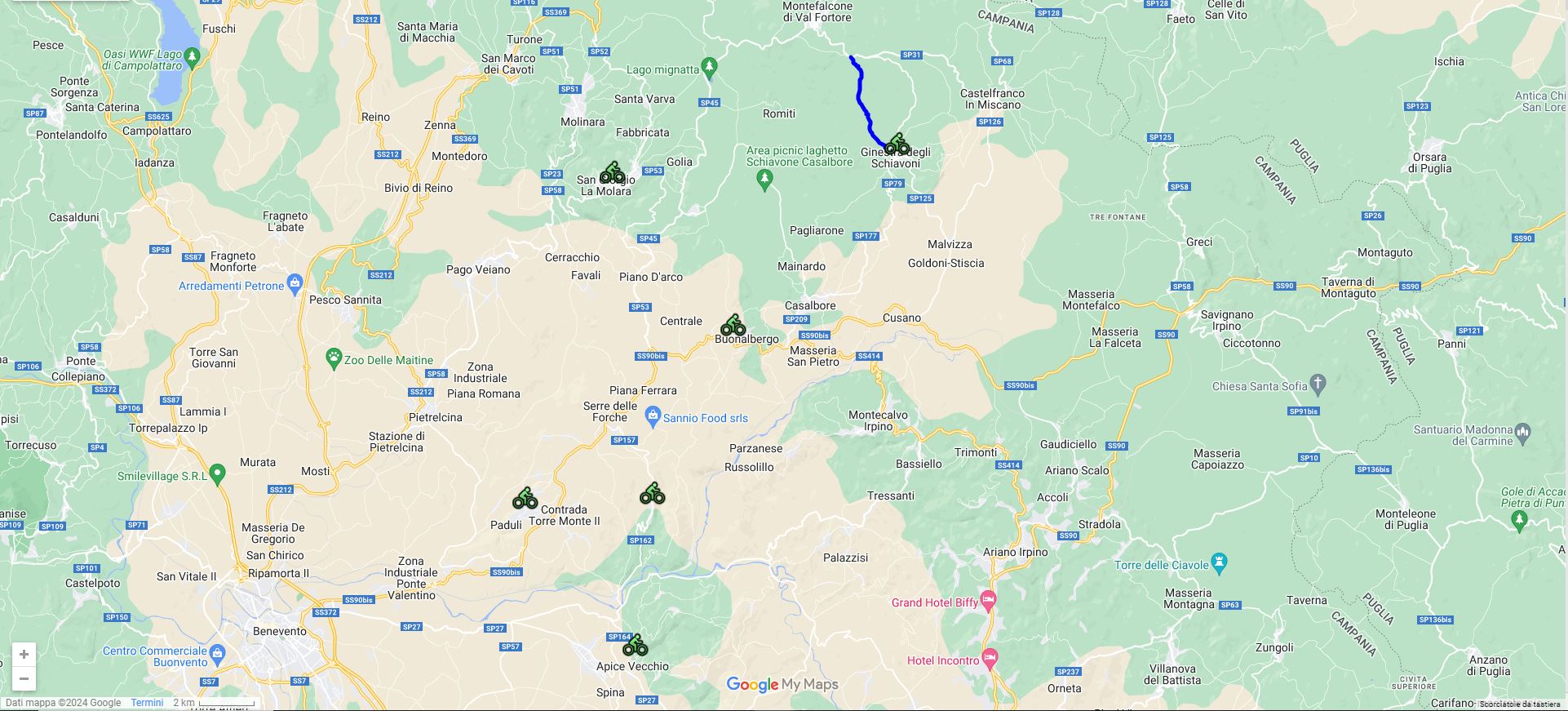 Il PERCORSO 2 si configura come un percorso più breve di collegamento tra Ginestra degli Schiavoni e Montefalcone di Val Fortore, attraverso una strada rurale lungo la quale si possono ammirare i rami fluviali che solcano il territorio, la ricca vegetazione collinare e la variegata fauna che lo abita.